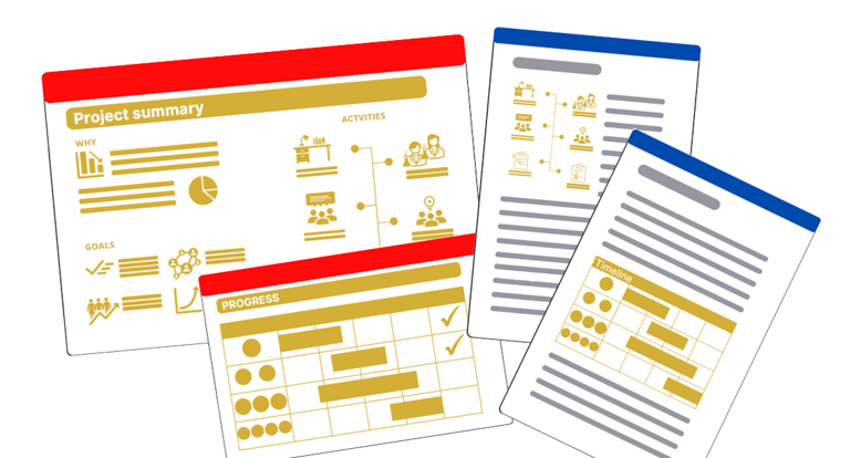 Visuele samenvattingen en overzichten om de essentie van uw innovatieproject bondig en bevattelijk weer te geven in een presentatie, one-pager of document.
